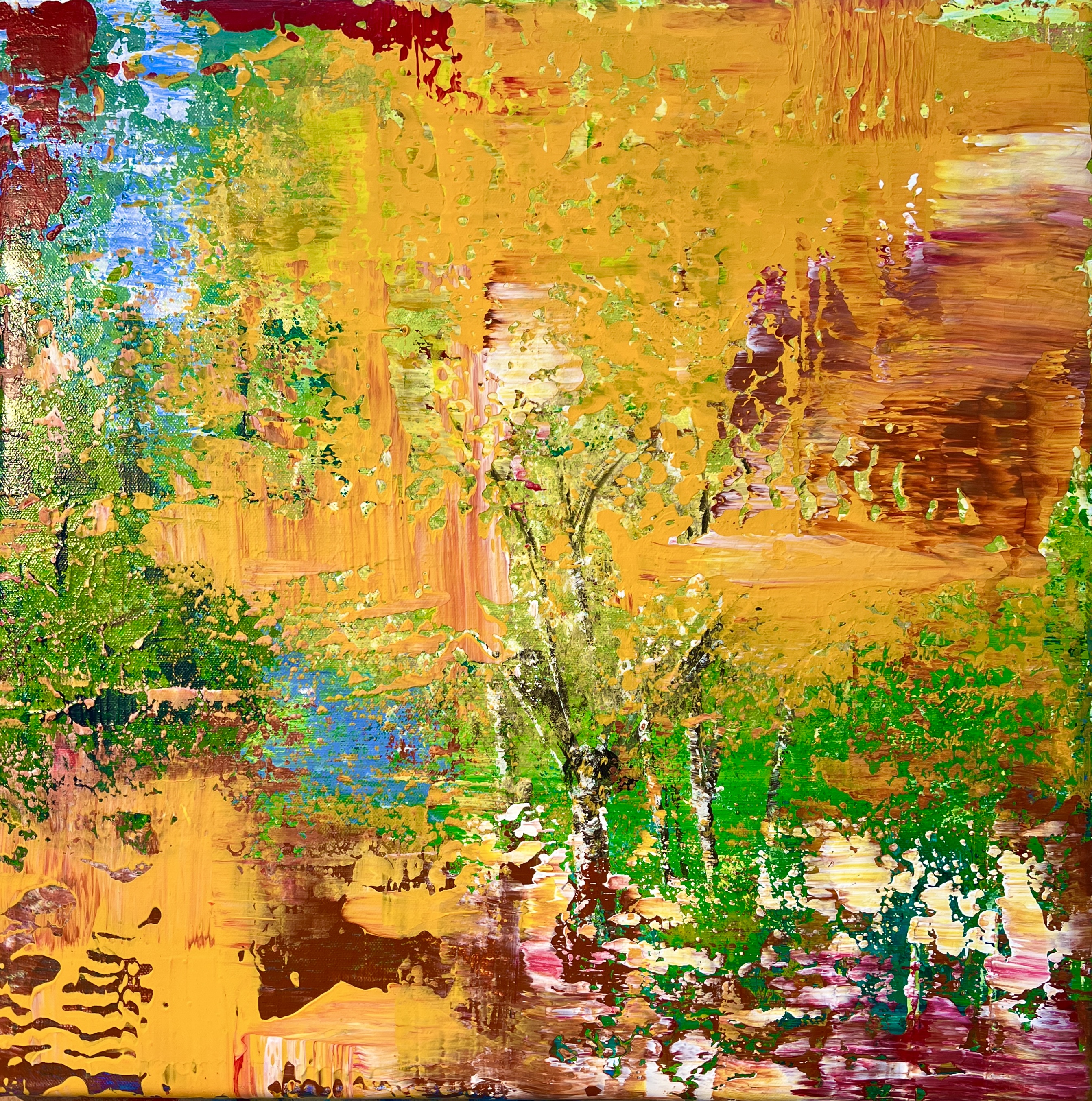 Ein weiterer wesentlicher Aspekt ihrer Kunst ist die Mehrschichtigkeit. Lösche arbeitet in einem Prozess, der bis zu neun Farbschichten umfasst. Jede Schicht wird aus einer spontanen emotionalen Entscheidung heraus gesetzt. Durch dieses Prinzip entsteht eine Tiefe, die sich erst im Raum vollständig entfaltet. Je nach Licht, Entfernung und Blickwinkel verändert sich der Eindruck subtil. Diese Werke „atmen“ mit der Architektur, reflektieren Licht in unterschiedlichen Intensitäten und interagieren mit den Farben und Materialien ihrer Umgebung. Für Innenarchitekten bedeutet das, dass ihre Kunst nicht statisch ist – sie lebt im Raum und mit ihm. Besonders interessant ist die psychologische Wirkung ihrer Kunst. Viele Betrachter berichten von beruhigenden, inspirierenden oder sogar stärkenden Emotionen, die die Werke auslösen. In einer onkologischen Praxis, die zwei großformatige Gemälde von Lösche erwarb, zeigte sich schnell, wie sehr ihre Farbwelten zu einer sanfteren, tröstenden Atmosphäre beitragen. Für Innenarchitekten, die im Bereich Healing Environments, Hospitality oder hochwertigen Büro- und Wohnkonzepten arbeiten, eröffnet diese emotionale Qualität enorme Möglichkeiten. Ihre Werke schaffen nicht nur Stimmung, sondern fördern Wohlbefinden, Orientierung und innere Ruhe – Qualitäten, die in der modernen Architektur immer wichtiger werden.